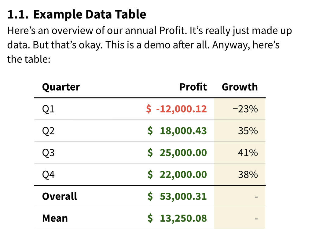 A data report is nothing without a table. With the included Typst table deep dive, you'll learn to build any table you want.